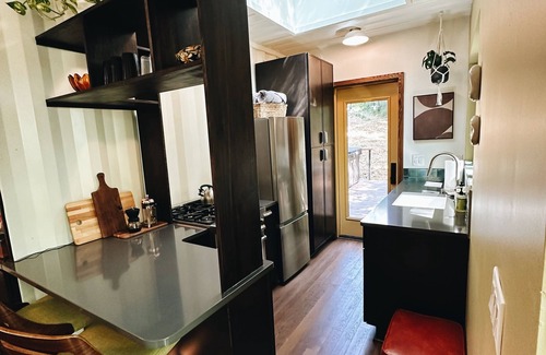 Best-rates for the Shipping Container Cabin starts from $548 per night with includes Entertainment, Balcony/Terrace, Laundry, Child Friendly, Internet, Wellness Facilities, Barbecue/Outdoor Cooking, Kitchen, Sports/Activities, Fireplace/Heating, Hot Tub, Air Conditioner, Parking, TV, Security/Safety, Bedding/Linens with all other amenities. Perfect for Weddings is committed to ensuring every guest experiences a comfortable and extraordinary stay, whether planning a romantic getaway, a honeymoon, a pet-friendly stay, or celebrating with the entire wedding party.