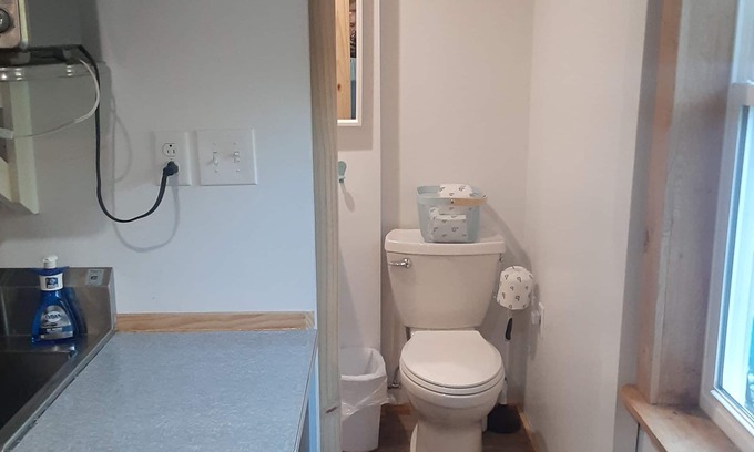 20 foot Shipping Container that is private 3 miles from houghton. Comfortable full size Murphy bed, kitchen area with hot plate and 12 in oven and refrigerator freezer. 3/4 bath with full shower. Outdoor concrete patio and solo stove fire ring. Air conditioning and furnace that is well insulated makes it perfect for all seasons.