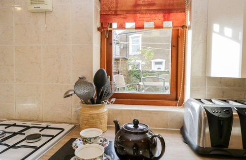 Amenities: Gas central heating with woodburning stove and gas fire. Gas oven and hob, microwave, 4-slice toaster, fridge, freezer, washing machine, tumble dryer, Freeview TV and WiFi. Fuel and power inc. in rent. Bed linen and towels inc. in rent. Cot and highchair available. Roadside parking. Rear enclosed courtyard garden with furniture. Shed for bike storage. Pets welcome. Sorry, no smoking. Note: Roadside parking only available to the front of the property, as the rear entrance leads to a private road where no parking is permitted. Shop and pub 0.2 miles. 5 minute walk to the beach. Note: Wide variety of local takeaways can deliver to the property.