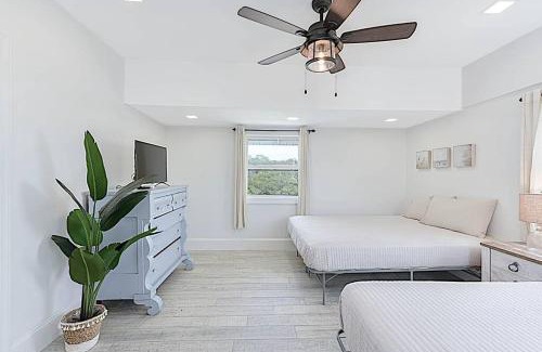 This property offers access to a balcony and free private parking. With free Wifi, this 6-bedroom vacation home offers a cable flat-screen TV, a washing machine, and a fully equipped kitchen with a dishwasher and oven. Towels and bed linen are offered in the vacation home. The accommodation has a fireplace. The nearest airport is Coastal Carolina Regional Airport, 60 miles from Shipwrecked on Shell Hill 2 Waterfront Houses.