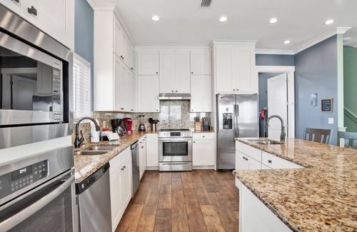 Shipwrecked is designed with your comfort and celebration in mind. The interior features spacious dining areas that overlook the pool and Gulf, perfect for hosting intimate receptions or group meals. The fully equipped kitchen includes granite countertops, two dishwashers, and an ice machine, ensuring all your culinary needs are met. Guests can relax in style, whether lounging by the private beachside pool or enjoying movie nights in the cozy living spaces complete with large televisions. The pet-friendly policy means you won't have to leave your furry family members behind, allowing everyone to join in on the festivities (additional fees may apply).