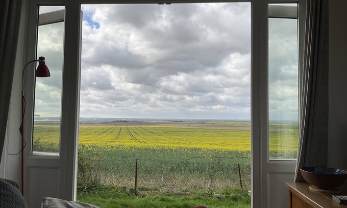 This beautiful south facing brick built chalet is self catering with open plan kitchen, wc and shower. The view across farming fields look towards Swale and beyond to Oare and Faversham and to the left, the lights of Seasalter and Whitstable. You can hang out on the grass front, relax and get away from it all as it takes just over an hours drive from London. Or you may prefer to swim or relax by the sea. Bird watching is popular due to the salt marshes. Very unspoilt and very photographic.
