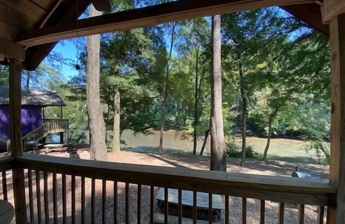 With a great river-facing porch with comfortable seating and beautiful views of the Ocmulgee River, you'll definitely be spending lots of time outdoors! The cottage is also situated on a large tract of land for exploring and comes with ample parking, perfect for a boat trailer. Towaliga cabins include amenities such as a charcoal grill, community fire pit, and access to Kayaks and Canoes.