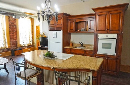 You will find yourself in the heart of the historic downtown in beautiful Marietta, OH. You'll be within just footsteps of the best shopping and dining that Marietta has to offer! Our apartment is newly remodeled and features exposed brick walls throughout the apartment, lots of natural light, as well as a comfortable queen bed, a full size kitchen, living room and bathroom. We include a parking space for the lot directly across from the apartment as well.