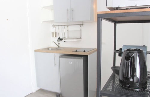 - an equipped kitchenette (hob, microwave, fridge / freezer, Nespresso coffee machine, toaster, kettle, crockery and cutlery, kitchen utensils ...)