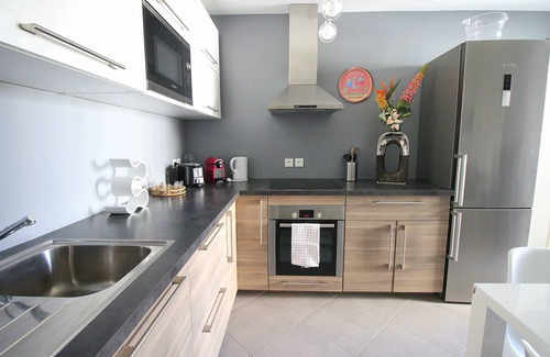 - an equipped kitchen (hob, oven, microwave, fridge / freezer, Nespresso coffee machine, toaster, toaster, kettle, crockery and cutlery, cooking utensils ...)