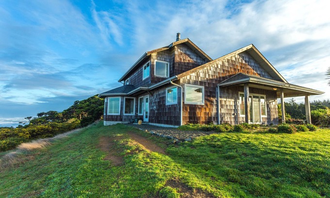 Enjoy this secluded, cliffside oasis on 27 acres with 180-degree views of the Pacific Ocean. Adjacent to Bandon Dunes’ newest course, the Sheep Ranch, enjoy the Oregon Coast at its finest: watch for gray whales, dolphins, seals, fishing boats, rainbows, admire the milky way and the moon, or enjoy a walk in the woods. This 3bed/3bath getaway offers spectacular sunsets and ocean views from nearly every room in the house.