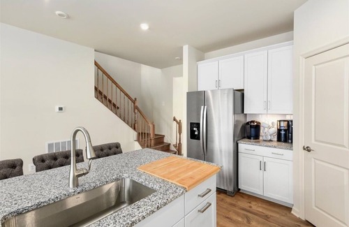 This bright and cheerful brand new build on an extended corner lot in the Bishops Landing community exudes relaxation and fun for a group of friends or your entire family. With a fully equipped kitchen and sun-filled open floor plan you're sure to make incredible memories together. Enjoy numerous community amenities, hang in the loft playing games, lounge in the reading nook or watch a movie on the 75" TV curled up by the fire - there's something for everyone! We look forward to hosting you.