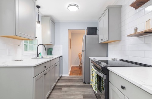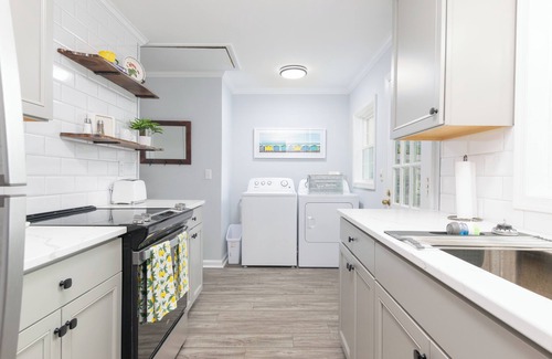 This 1000 square foot 2 Bedroom 1 bathroom single level cottage has been recently renovated to the highest of standards by experienced short term rental operators. The home features an inviting living space with seating for 4 guests comfortably at the dining table. A full Kitchen/outdoor gas grill with all the necessary items to construct a home cooked meal for your guests before they walk downtown to enjoy the local nightlife. The bathroom includes a luxury spa shower experience with 4 adjustable shower heads, and a spacious vanity to help you prepare for work meetings, tailgating, or to enjoy the night life out with the kids. The main bedroom features a King bed and the secondary suite features a full over twin bunk configuration for families or the potential guests. All the bedding and mattress are of high quality and are freshly prepared for your arrival. All the flooring has been re-finished or re-surfaced, replacement windows, a new roof, patio, HVAC, and firepit round out the amenities. There is even a washing machine and dryer to help out your students with all their dirties during your visit to town :)