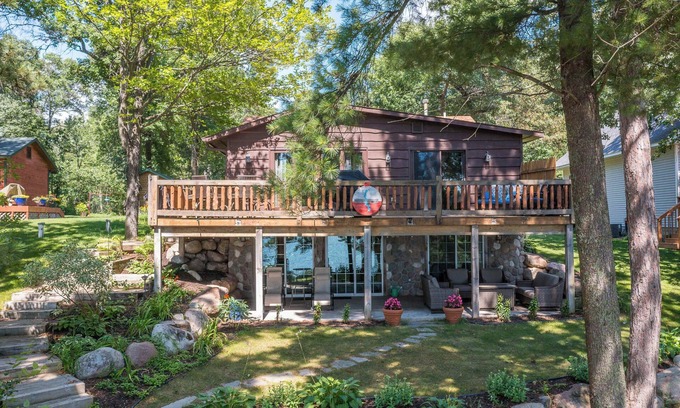 This charming 3-bedroom, 3-bathroom home is nestled on the shores of beautiful Sibley Lake, offering stunning lake views and a large private deck. With plenty of space for up to 10 guests, this is the perfect escape for families or groups of friends looking to enjoy all that the Breezy Point / Crosslake area has to offer. A friendly 6-foot gnome greets you as you arrive, adding a touch of whimsy and charm to this delightful retreat.