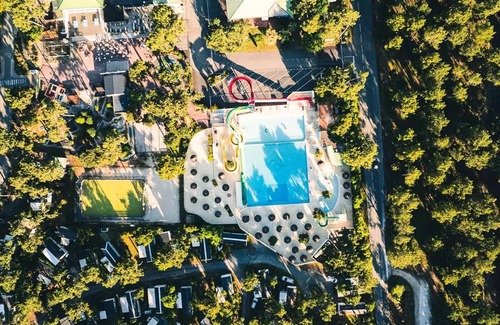 • children's playground, archery*, bike rental*, mini-golf landscape (free for siblings and fun pass holders), trampoline*, inflatable castle*, multi-sport field, basketball, volleyball, climbing wall*