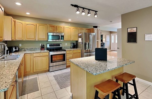 The home's interior offers a cozy refuge for your stay. With air conditioning, heating, fireplace, and smart TVs, you'll want for nothing during your stay. The precisely equipped kitchen, which includes a coffee maker, dishwasher, and an array of cookware, makes meal preparation a breeze.