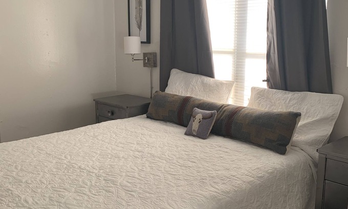 Enjoy a stylish experience at this centrally-located space decorated in West Texas Ranch Style. Downtown San Angelo is where its at! Living area overlooks Chadbourne and includes a desk and smart TV. Full kitchen with fridge stove and a 2 person dining table. A queen size bed, 2 closets and full bath with shower/tub round out this well appointed space. The Sidewinder Suite is very walkable: coffee shops, bars, restaurants, art galleries, yoga studio. 2 blocks to Shannon Medical Center.