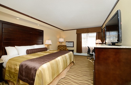 Recreational amenities at the motel include a waterslide, an indoor pool, and a fitness center.