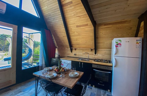 This A-Frame property is made entirely of natural wood and is one of only16 villas at the Benim Koy complex. The villa is well-equipped with a kitchen that is open plan to the lounge area. Free Wi-Fi, dishwasher, washing machine and TV are there to compliment your stay. There are two bedrooms - 1 x twin room on the ground floor and 1 x double room on the first floor, the bathroom is also on the ground floor.