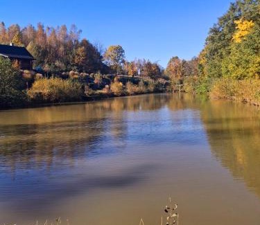 Siedlisko Sielska Dolina Nad Stawem luksusowy domek całoroczny z klimatyzacją offers accommodations in Tarnowiec, 11 miles from Museum of Oil and Gas Industry Foundation and 23 miles from Magura National Park. The air-conditioned accommodation is 10 miles from BWA Art Gallery. There's an outdoor fireplace and guests can use free Wifi and free private parking. Featuring a terrace and lake views, the vacation home includes 1 bedroom, a living room, flat-screen TV, an equipped kitchenette, and 1 bathroom with a shower. Towels and bed linen are available in the vacation home. The property has an outdoor dining area. Guests at the vacation home can enjoy fishing nearby, or make the most of the garden. Rzeszów-Jasionka Airport is 53 miles from the property.