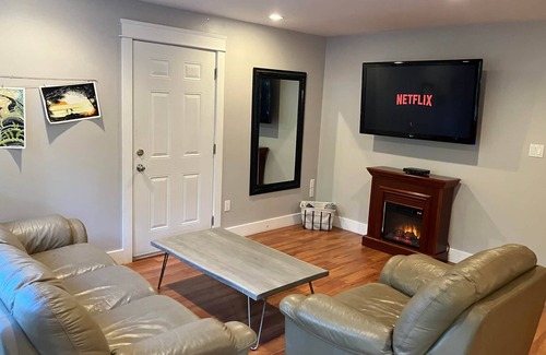 Sienna's Tree House is located just a few minutes walk from the famous North Chesterman Beach in Tofino. This cozy west cost 2 bedroom apartment is surrounded by trees making it the perfect place to relax, yet still convenient located just 4.5km from downtown Tofino. This home contains a king size bed and two extra long twin beds that makes it comfortable for adults as well as children to sleep on. A three piece bathroom. The open living space gives you plenty of space to entertain both in the living room and your own patio. Our fully equipped kitchen and barbecue gives you the freedom of cooking your own meals. We also provide coffee, tea, common spices and condiments, linen towels and bathroom essentials to make your stay as convenient as possible.