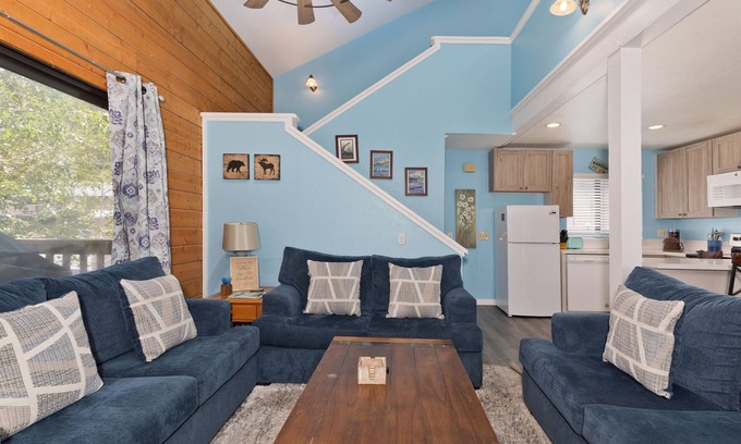 The amenities at Sierra Suns 2 cater to every need of your wedding group. The well-equipped kitchen is ideal for pre-wedding gatherings, featuring a dining table that comfortably accommodates eight, alongside a breakfast counter for casual dining. Relax in the cozy living room with plush couches and a wood-burning stove, ensuring warmth and comfort during your stay. With three bedrooms, including a master suite with a king bed, and additional sleeping arrangements like two queen/twin bunk beds in the loft, this townhome can accommodate up to nine guests. The balcony with a gas BBQ sets the stage for unforgettable evening celebrations under the stars.