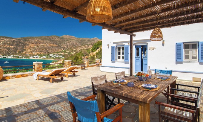Best-rates for the Sifnos Theros Villa starts from $261 per night with includes Wellness Facilities, Entertainment, Child Friendly, Ocean View, Balcony/Terrace, Security/Safety, Sports/Activities, Hot Tub, TV, Internet, Laundry, View, Fireplace/Heating, Barbecue/Outdoor Cooking, Kitchen, Air Conditioner, Parking, Oceanfront, Bedding/Linens with all other amenities. Perfect for Weddings is committed to ensuring every guest experiences a comfortable and extraordinary stay, whether planning a romantic getaway, a honeymoon, a pet-friendly stay, or celebrating with the entire wedding party.
