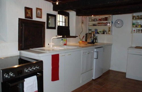"Signorile", 5-room house 240 m2 on 4 levels. Simple and antique furnishings: large dining room, ceiling height 170 - 190 cm, Low door height 170 cm. Kitchen (oven, dishwasher, 4 ceramic glass hob hotplates, toaster, kettle, freezer, electric coffee machine, Capsules for coffee machine (E.S.E Pads /Migros) extra), ceiling height 170 - 190 cm. On the lower ground floor: 1 room with 2 beds (100 cm, length 200 cm). Sep. WC. Upper floor: 1 double bedroom with 1 double bed (160 cm, length 200 cm). Bath/WC. Electric heating. 2nd upper floor: large living room with sloping ceilings, ceiling height 150 - 400 cm with open-hearth fireplace (only for decoration), satellite TV, flat screen and radio. Small alcove with 1 french bed (140 cm, length 200 cm), shower/WC. Wooden floors. Small balcony. Terrace furniture, deck chairs (2), sitting area. Very beautiful panoramic view of the mountains, the valley and the countryside. Facilities: washing machine, iron, mosquito net, children's high chair, baby cot for up to 2 year olds (extra), hair dryer. Internet (WiFi, free). Please note: non-smoking house. Maximum 1 pet/ dog allowed. No lift. Instead of an enclosed bedroom, some sleeping areas are located in an open-plan area (gallery, alcove, etc.). NL-00007252
