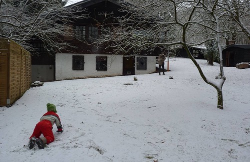 The Waldhaus Haag in Morbach-Haag is a beautiful rustic cottage in the woods, yet only ten minutes walk from the nearest village Haag. The house with four bedrooms, a large living room with fireplace and a cozy fully equipped kitchen has space for eight to ten people. The swimming pool and sauna in the house provide plenty of fun and recreation for young and old guests. Outside the door is a cozy barbecue area, a large play area with slide and sandbox for the kids and especially the silence of the forest that surrounds the house. Just two minutes from the house you can see deer and sheep in the pasture. Around the house many wonderful ways invite to explore the area and the nearby romantic Mosel vallee.