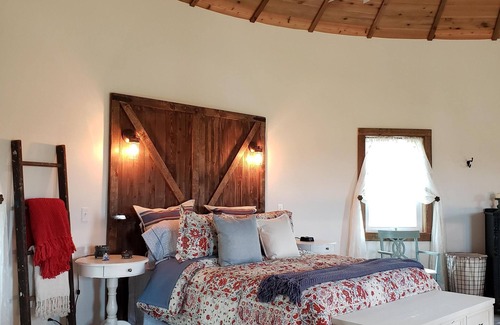 Welcome to Silo Farm Haus, a unique and charming wedding accommodation nestled in the heart of wine country. This original grain bin, transformed into a cozy retreat, sits on a stunning 200-acre farm. With its picturesque scenery and tranquil atmosphere, it's an idyllic setting for couples looking to celebrate their special day. Just minutes from local wineries, breweries, and exceptional dining, Silo Farm Haus offers a romantic escape for wedding parties and honeymooners alike.
