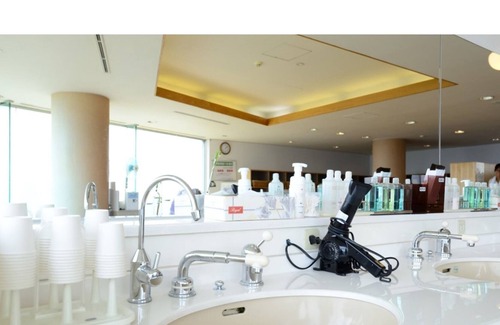 When you soak your body in the bathtub you can see the grand view of Mt Fuji and the streets of Mishima and Numazu