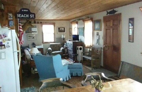 24 x 32 Cape Cod style cottage, open floor plan, two bedrooms queen mattresses with kitchen and full bathroom, second floor loft with full bath and queen bed to yourselves. Owners on premises. Large deck and easy access to Sachem Pond, Clay Head nature trail, Block Island National Wildlife Refuge, Sandy Point and North Lighthouse. Great for birders, anglers and nature lovers. Abuts the best spot for migratory songbirds on the Island and one of the top in the Northeast. Swim or paddle in the pond on the waterfront or take a short walk to the ocean at Settler's Rock.