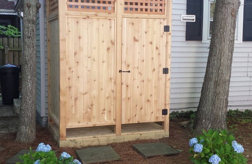 The cottage is small, cozy and quaint. Nestled in 'The Pines' neighborhood, the property is filled with old Rehoboth character and charm.