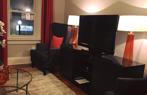 Simply Panache Place B features a beautifully designed 900-square-foot space with two bedrooms equipped with queen-sized beds, a full kitchen, bathroom, dining room, and living room—perfect for accommodating wedding guests. Enjoy luxury amenities such as daily breakfast from the renowned Mango Mangeaux restaurant, ample off-street parking, and individual climate control for your comfort. The property also boasts a glassed-in sunroom filled with natural light, high-quality linens, and luxurious bath products to enhance your stay. You can even customize your experience with available packages tailored specifically for weddings or special occasions.