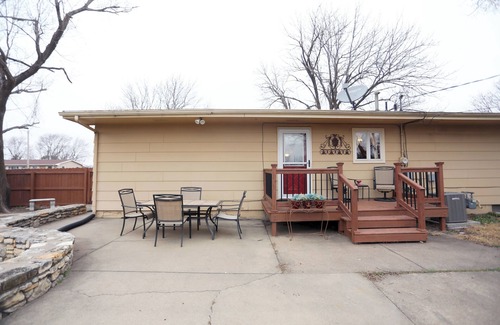 Lots of love went into setting this property up to share with others. This charming 3 bedroom 1 bath home sleeps up to 6 with 2 queen beds, a twin bed, and a sleeper sofa. It makes for a perfect retreat for families, a small group, or anyone wanting to unwind in comfort. It is located in the perfect part of town just a few blocks from all the south Salina stores. It is in a quiet, friendly neighborhood and it offers all the amenities and essentials you’ll need. It sits on a large corner lot and offers a huge fenced in backyard with a privacy fence that is ideal for outdoor fun, BBQ’s, or soaking in the sunshine.