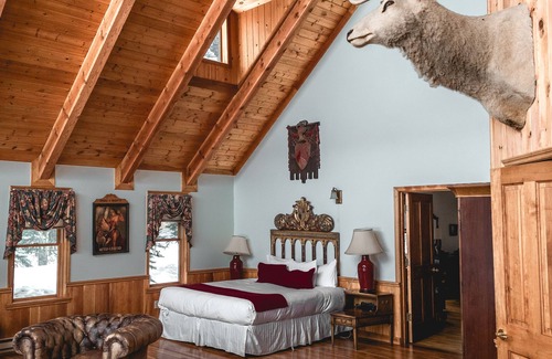 As the proud owner, I am excited to share that our lodge is home to more than just its architectural splendor. During the winter season, spend time on the ski slopes in the area, view elk on a horse drawn sleigh at the Elk Refuge, and then return to relax by the roaring fire at night. The summer months include rafting, hiking, biking, horseback riding, shopping and visiting the Grand Teton and Yellowstone National Parks. Summer nights on the property are for treasuring time, watching stunning sunsets, and enjoying a s'mores night while picking out constellations in the night sky. Our property hosts the most amazing farm animals, adding a touch of magic to the stay for families and groups alike. Enjoy evening goat walks, fresh eggs in the morning, and watching the pot belly pigs ramble around the property. The presence of these pets enhances the overall experience, creating cherished memories for everyone who graces our doorstep.