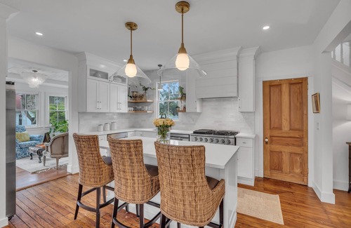 Victorian charm meets modern elegance in this newly-renovated shoreside home. Built in 1885 and fully renovated in 2022, this impeccable shore-side home comes complete for your stay with: high speed WIFI, central air conditioning, ceiling fans in each bedroom, a fully equipped kitchen, and so much more. Multiple spaces available throughout the home for relaxation and gatherings; from the wrap-around front porch to kitchen island with ample seating and a full dining room for more formal affairs. Spend your days at the beach (only 1 mile away from the property) and unwind the evenings in the large, private backyard, we allowed small no-shouting dogs. Home includes outside shower, 6 beach chairs, 4 Manasquan Beach Badges