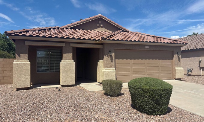 Enjoy your stay in Sunny Arizona at this well appointed single level home. This home is equipped with all the essentials and features a king size bed in the primary bedroom, adjustable queen size bed in the 2nd bedroom and desk/office set up in the 3rd bedroom. The vaulted ceiling provides a spacious living area leading to the outdoor living space with views of the community park through view fencing. Enjoy the open yet private views from your backyard. Smart TV, & utilities included with a $150/mth cap on elec & gas. Wifi included. Cable upon request for an additional cost. This is a non-smoking, pet free home.