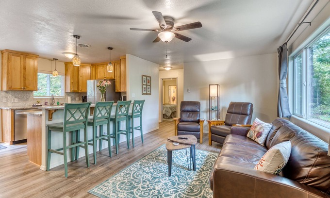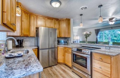 The Beverly Home’s quaint coastal location offers visitors a peaceful forest setting that’s far from the beach crowds. The whole family will be able to rest, relax, and recharge at this beautifully updated Bandon vacation rental. The home features a modern kitchen with stainless steel appliances and granite countertops. Light the gas grill to cook homemade meals outdoors, spend time with your family (and up to two dogs) in the fenced-in backyard, and enjoy TV offerings that include the Golf Channel for quiet nights at home.
