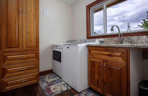 The whole group can gather around in the fully-equipped kitchen to make a meal together, or to enjoy some wine and conversations at the wet bar. In the summer, you and your guests can enjoy meals on the outdoor patio and relax in the setting sun. Patio lounge seating, a outdoor dining table and large BBQ grill recently added.