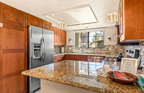Due to HOA policy the minimum stay is 6 nights/7days. This one bedroom condo is located in Phase 4 of Mesquite Country Club. It’s fabulously remodeled with a king size bed and beautiful furnishings.