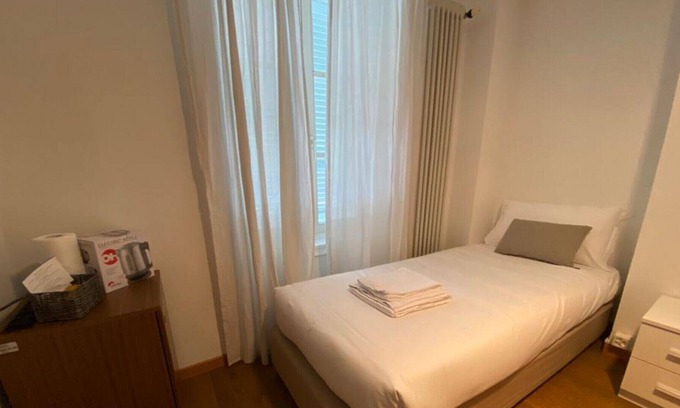 Room 21 is a single room, composed of a single bed, a table for two and a private bathroom with shower, and includes a mini fridge, a kettle and a wardrobe.