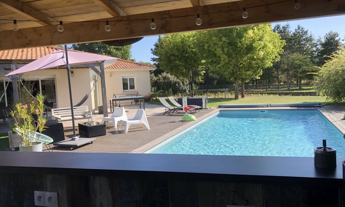 Single storey house with heated pool is located in Bouaye. Single storey house with heated pool provides accommodation, featuring Parking, TV, Private Pool, among other amenities. This Villa features Parking, TV, Private Pool, to make your stay a comfortable one.