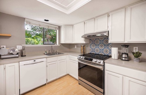 Enjoy a stylishly remodeled kitchen and bathroom for your comfort. Our home offers the ideal mix of tranquility and shopping convenience. Book your stay for a blend of relaxation and retail therapy!