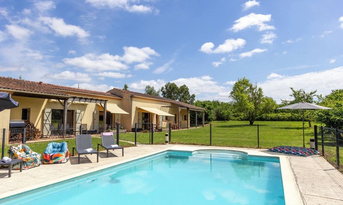 Single-story spacious villa, secure gated and alarmed pool, walk into village has 5 Bedrooms , 4 Bathrooms, and max occupancy of 12 people. The minimum rental for this property is 1 nights, but this can change depending on the season you plan on staying. Previous guests have given good rated it, and VRBO labeled it a top-rated Villa because of the excellent services rendered by the owner or manager of this Villa, and has consistently provided great experiences for their guests. Most families or guests that use it recommend it to their friends and some of them are repeat guests. Villa has a friendly neighborhood, and the Allemans-du-Dropt has interesting places to visit. If you want to learn more about the Villa in Allemans-du-Dropt, such as places to visit and things to do nearby, you can check below to learn more.