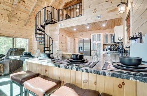 Enjoy a memorable couples’ retreat in Northern Georgia at this 2-bedroom, 2-bath Cleveland vacation rental! Perfect for nature enthusiasts and wine connoisseurs, the A-frame cabin has an open-concept living area, a full kitchen, and a serene outdoor space with peaceful wooded surroundings. After days spent hiking nearby trails and savoring local flavors, unwind with a dip in the hot tub. It's up to you!