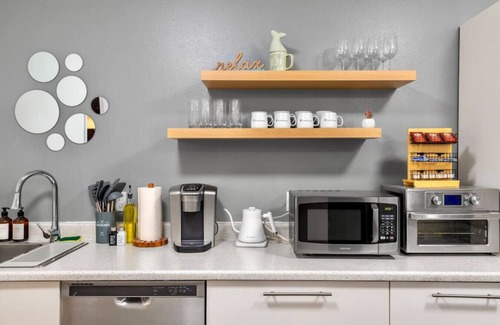 This house features 2 bedrooms with 1 king size bed and 2 queen size beds, 1 newly remodeled full bathroom, providing enough space for families and groups. This house also has a kitchenette with everything you need for preparing fresh meals. New appliances, smart home devices are also equipped in this house for better stay experience.