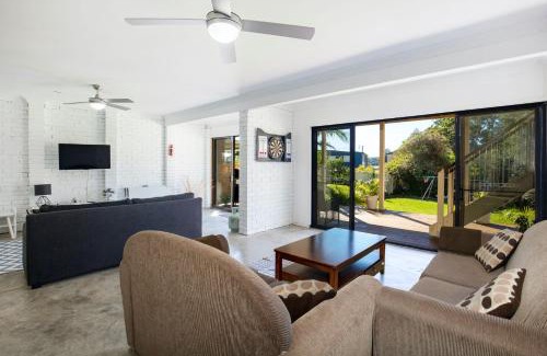 Sirius Retreat Pet Friendly 3 Mins Walk to St George Basin offers accommodations in Sanctuary Point, 1.4 miles from Paradise Beach. This vacation home provides free private parking, private check-in and check-out, and free Wifi. Guests can use barbecue facilities. Leading onto a patio with quiet street views, the spacious air-conditioned vacation home consists of 4 bedrooms. Providing a terrace with garden views, this vacation home also provides guests with a flat-screen TV, a well-equipped kitchen with a dishwasher, an oven, and a microwave, as well as 2 bathrooms with a bath and a hair dryer. The property has an outdoor dining area. Shellharbour Airport is 55 miles away.