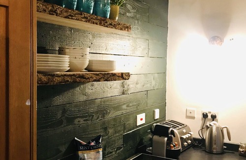 We have a fantastic local pub ‘The Milkhouse’ a ten minute walk away through the woods and fields, and our local small town Cranbrook is a five minute drive.