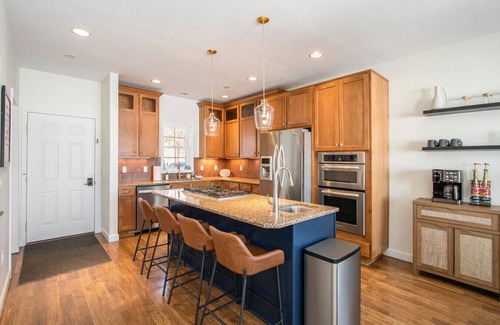 Whip up your favorite meals in the full kitchen boasting granite countertops and stainless steel appliances, then kick back in the adjacent living room featuring comfy couches, a large TV, and a cozy indoor gas fireplace.