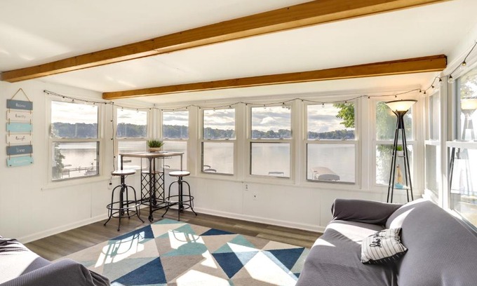 Sister Lakes Cottage with Dock and Grill! is located in Woodland Beach, just 29 miles from Swiss Valley Ski and Snowboard Area and 29 miles from Warren Golf Course. This beachfront property offers access to free Wifi. Featuring a patio and sea views, the spacious vacation home includes 3 bedrooms, a living room, flat-screen TV, an equipped kitchen, and 3 bathrooms with a shower. Towels and bed linen are available in the vacation home. For added privacy, the accommodation features a private entrance. South Bend Regional Airport is 40 miles from the property.