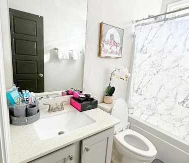 Featuring a garden, Sisters Savvy Home offers accommodations in Lawrenceville. This property offers access to a balcony and free private parking. Outdoor seating is also available at the apartment. With free Wifi, this 1-bedroom apartment features a satellite flat-screen TV, a washing machine, and a fully equipped kitchen with a dishwasher and oven. The comfortable, air-conditioned accommodation also comes with soundproofing and a fireplace. For added privacy, the accommodation has a private entrance and is protected by full-day security. There is an on-site bar. An indoor play area is also available at Sisters Savvy Home, while guests can also relax on the sun terrace. Stone Mountain Carving is 20 miles from the accommodation, while Historic Stone Mountain Villiage is 22 miles from the property. Hartsfield–Jackson Atlanta International Airport is 47 miles away.