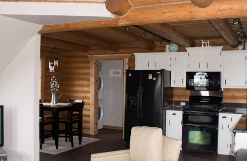 The cabin has 2 bedrooms, each with pillow top queen beds, a full bathroom, and extra sleeping space in the loft with a futon, and convertible sofa. We do have a nice queen blow up mattress and several sleeping bags available upon request. The kitchen is fully stocked with service for 8, flour, sugar, and spices.