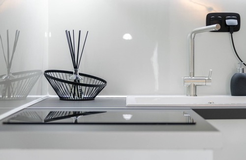 For your culinary needs, there is a compact kitchenette complete with two cooking rings, a refrigerator, an espresso machine, and a convenient water boiler.